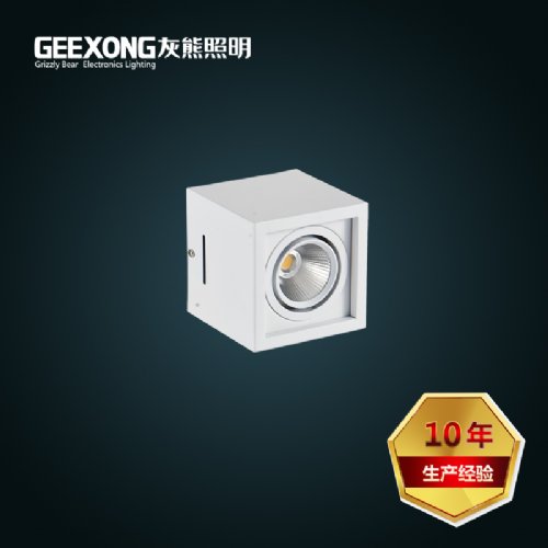 2、灰熊品牌可调头方形LED明装筒灯/方形LED明装射灯采用优质纯铝外壳,一体锻造而成,整体散热性更好,光衰更少,寿命更长,可完美替代金卤灯。