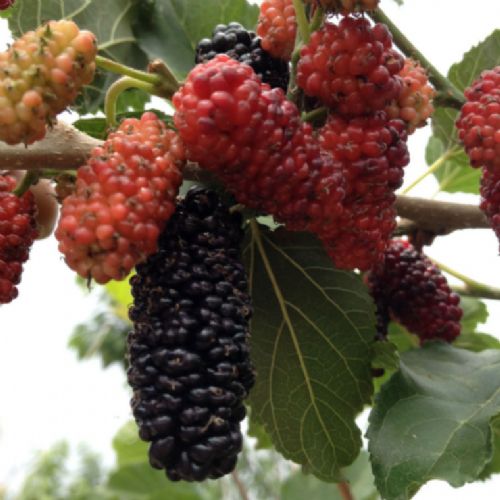 果桑市场发展前景广阔,我国大部分地区都可种植。该品种树形开张,枝条细长,花果极多,果实较大,圆筒形,*大果重10.5克。果实成熟后由紫红色到紫黑色,果面光泽性强,颜色鲜艳,光亮美观,象黑珍珠一样。口感酸甜适口。叶片可养蚕或炒茶,果实可加工成罐头、果汁、酒、茶、还可以加入酸奶中,应用广泛,速冻果和加工品市场出口前景广阔。该树种适应性广,抗性强、生长快,结果早,效益好,果实美观,采摘期长,是当前建设生态采摘园的*品种,也是山区丘陵地区*有发展前景的致富项目之一。