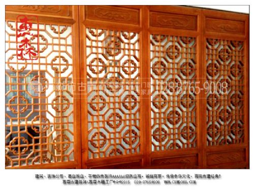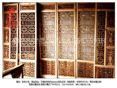 主营业务:木制匾牌、仿古门窗、仿古挂件、花架、屏风、明清家具、中式亭子