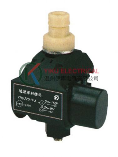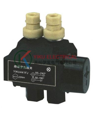 工作原理:穿刺线夹主要由壳体、穿刺刀片、防水胶圈、力矩螺栓组成。当做成电缆分支连接时,剥去电缆外层护套(注:无需剥去绝缘层),蒋分支电缆插入具有防水功能的支线帽并确定好主线分支位置后,用套筒扳手拧线夹上的力矩螺母。在拧力矩螺母的过程中,线夹上下两块暗藏有高导电金属穿刺刀的绝缘体逐渐合拢,与此同时,包裹在穿刺刀片周围的弧形密封胶圈逐步紧贴电缆绝缘层,穿刺刀片亦开始穿刺电缆绝缘层及金属导体,愈拧力矩螺母,穿刺力度就越大。当密封胶圈的密封程度和穿刺刀片与金属导体的接触达到*佳效果时,力矩螺母便会自动脱落,此时,主线和分支接通,且防水性能和电气效果*佳,大大的提高了电网运行的稳定性。