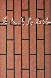 施工工艺:①基面处理:清除基面污物、浮尘,凹凸不平处,用1-2道美人鸟外墙*腻子找平。②底漆:涂刷美人鸟真石漆配套*底漆。③勾缝:按照设计要求的分格方式,测量、划线、贴纸,将格缝的部位贴美纹纸。④中涂:喷涂或批刮1-2道美人鸟天然仿砖真石漆主材。⑤勾缝:去除美纹纸。⑥研磨:干燥后用180砂纸研磨(可选)。⑦罩面漆:涂刷美人鸟真石漆配套*面漆。