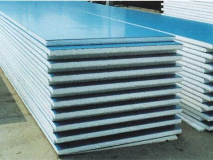 彩色钢板为面层,聚苯乙稀轻质、防火、阻燃的保温材料作芯层的新型建筑材料。具有重量轻、隔热好,吸音及密封性好,施工方便,周期短,综合造价低,抗弯,搞腐蚀,外型美观等明显优势。