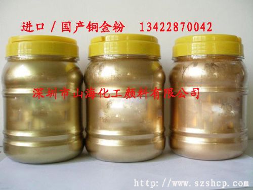 由铜、锌和铝合金按一定比例混合,经球磨、筛选分级成不同规格的漂浮性片状颜料,按色相分,胶印和凹印系列铜金粉色泽光亮,金属感强,所有金粉都有通过欧盟检测认证。还有代理德国爱卡系列、舒伦克、比利时系列铜金粉。