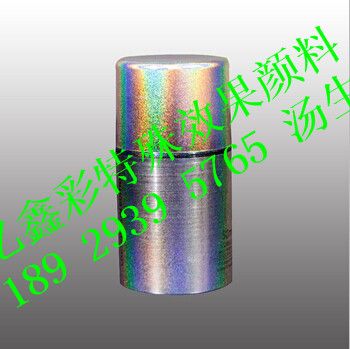 镜面银镭射浆(或彩虹颜料浆)是一种高级金属光变颜料,由薄片金属铝经特殊加工而成,其配成的油墨所涂印的表面,在弱光下呈现金属银白色,在直射光照下产生明亮鲜艳的彩虹现象,并随着观察角的变化而呈现出不同颜色。