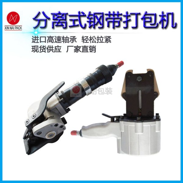 两个必须配合一起使用,才能完成全部打包动作(拉紧、锁扣、折断)。具有重量轻,操作简便,安全可靠,捆扎迅速牢固,且劳动强度低,适用于钢材、管材、板材等物体的打包。