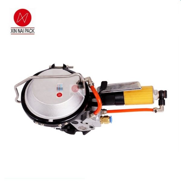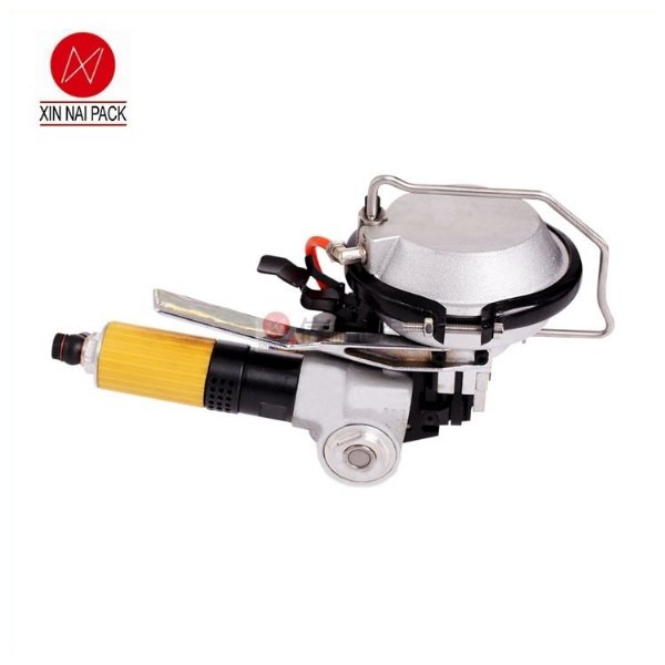 拉紧、咬扣、切带一个机器完成,操作简单方便双按键操作,分别控制拉紧及咬扣,保证打包动作准确使用密合式单咬扣连接机器重量轻,可手提操作或悬挂使用推扣式气动束紧,适用于管状物及不规则物体包装适用于各行业产品之包装,尤其是卷状物或不规则物体,如卷板、卷筒纸、钢管等