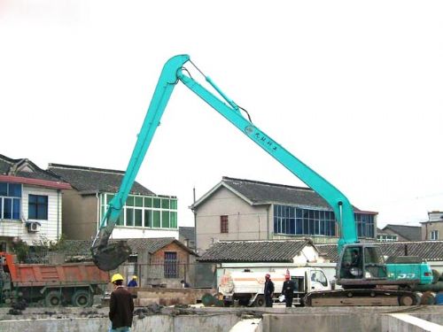 4)三段式加长臂配备液压剪:安全,操作灵活,功能稳定,是绿色环保型拆除机械,根据改装长度20—30米,可直接拆除10层以下楼房,既可避免人工拆除高层建筑物的危险性又保证了拆除的可操作性。 - 广州市九环工程机械有限公司