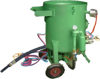 特点:气动控制,故障率低,易损件少,投资少,效率高,轮式结构,定点及移动喷砂两用,移动方便.