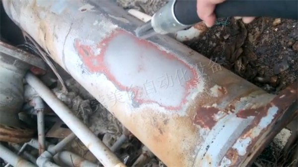 卸掉喷砂软管及相应的密封垫,打开磨料阀及进气阀,受潮的磨料即可被清除干净(注意:磨料的进口速度很高,无关人员须远离磨料阀的进口)。随后关闭进气阀,打开排气阀,再把卸掉喷嘴后的喷砂软管接到喷砂机上,打开进气阀和主气阀,喷砂软管内湿磨料亦被清除干净。关闭排气阀,再把喷嘴接到喷砂软管上,喷砂作业即可正常步骤重新进行。