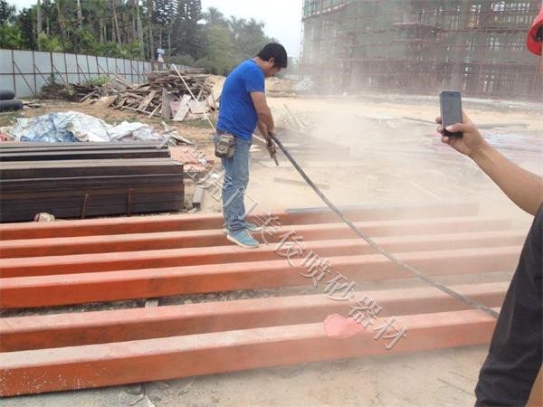 1)喷砂工握住喷砂枪准备工作,关闭手控调砂阀;