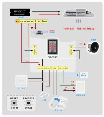 是“英泽电子”单门一体机系列其中一个产品,FC-898E是专门为电动门锁及安全防范系统应用而设计的高安全、多功能智能单门门禁一体机,该产品采用铝合金外壳十分坚固耐用,结合抗金属读卡技术是市面上少有的金属结构门禁产品,它将EM读卡器与门禁控制器集成为一体,可外接一个WG26系列读卡器实现双向管制,极大地方便了用户应用。FC-898E编程设置直接在密码键盘上进行,操作方便,使用简单,安全可靠。FC-898E自带键盘自锁功能,用户可以自行设置键盘错误输入次数及预设键盘自我锁定的时间,防止不法探测开门行为。