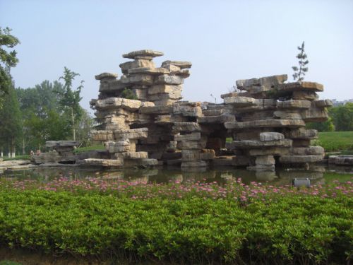 假山,是我国园林中优秀的传统艺术,已有两千多年的历史。它的制作要经过选料、筑池、叠山、装饰四个阶段来进行。选料:大型山石的制作,无论是硬质石料与软质石料、不论是吸水与不吸水,都要求做到石料统一,规格统一(块状或条状)。筑池:叠山理水,筑池是理水的一种手段。水是山的血脉,有水则灵。水池的式样有多种。常见的是圆形,通常直径在5至10米,深度在80至120厘米;水深减除20厘米口沿,保持60厘米至100厘米;池底留有管道放水。叠山:假山不论是多体的(组合式),或单体的(孤峰式);它都是由主体(主峰)、客体(客峰)、衬体(矮山)三部分构成的。