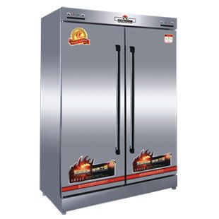 不锈钢高温消毒柜是指通过远红外线高温方式给食具、餐具、毛巾、衣物、美容美发用具、医疗器械等物品进行杀菌消毒、保温除湿的工具。外形一般为柜箱状,柜身大部分材质为不锈钢。酒店厨房双门消毒柜为中国发明首创的电器产品,作为现代厨房中重要的电器之一,广泛用于酒店宾馆、餐馆、学校、部队、食堂等场所。