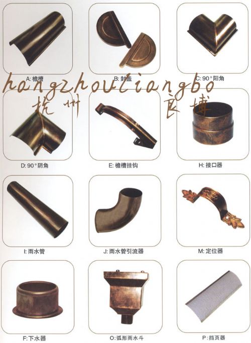 本产品采用锰铝合金材质,压铸无缝技术,表面采用静电粉末喷涂,200度高温烤漆,**掉漆。使用寿命可达70年以上。外形美观大方,欧洲风格,尊贵典雅!真正的排水*。主要用于别墅、排屋、居民房、小高层、阳光房、钢结构房等屋面排水。成品采用纸箱包装,运输方便,保护性好。公司以“信誉*一,客户至上”的经营理念,保证客户永无后顾之忧。对不懂安装者,本公司可派专业技术人员前去指导。热忱欢迎广大客户洽谈! - 杭州良博建筑材料有限公司