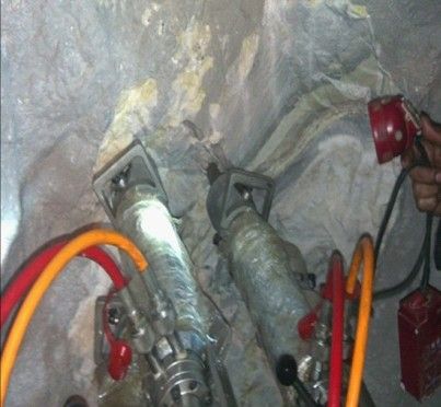 3、插入劈裂枪,依断裂层破拆。液压劈裂机破拆法的经济消耗为:电费+人工工资+机械耗损;而破碎锤作业基本上都是选取“租赁机械带操作人员”的方式,其经济消耗为高租赁费,柴油能源的消耗。经过湖北迪戈的试验取样,液压劈裂机破拆法的经济消耗只有破碎锤的15%。从施工效果上来讲,在同样的石方破拆工程上,一台破裂机的效率是破碎锤的2倍。在破碎锤敲打岩石时,破碎锤会反弹过来,没有起到破碎作用。而劈裂机是大块大块的劈石头。也就是说,液压劈裂机破拆法是一个高效经济的方法。 - 深圳市力致机械设备有限公司