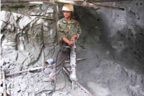 2、在横截面上凿深度为40~50公分的孔,为提高作业效率,凿孔的作业可以提前进行;