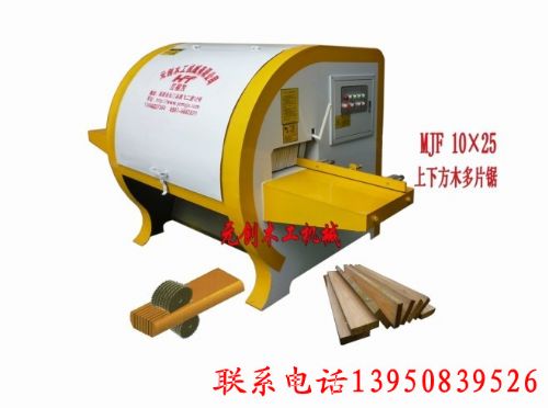 此多片锯横轴,锯片垂直锯销原木。自动分中。即适合中间开方料,也适合全部开片(锯自然宽板片)。锯路小,适合加工小口径原木。是木工机械的*!
