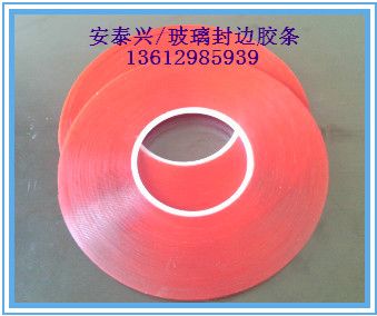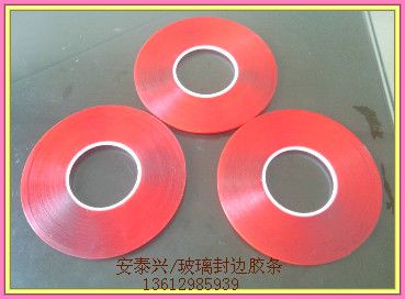 玻璃封边胶条 使用方法:直接把透明夹胶条粘在玻璃四边边缘上,留一灌胶小口,把红色离型膜撕下,再把另一块玻璃盖在胶条上面,压紧防止胶水溢出,在缺口灌进夹胶液,灌好胶水再把缺口封好。