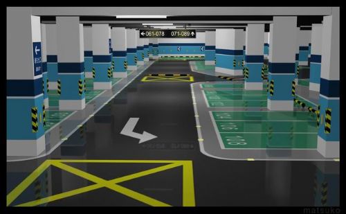 5、柱面处理为增加停车场柱面的醒目性,避免因倒车碰到柱子,柱子下端1.0-1.2米以下可采用黄色和白色相间斜纹斑马线进行标明。