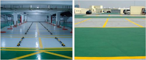 【性能特点】车库通道和停车区地坪专门用于地下车库或室内停车场地面,用不同颜色将车库通道