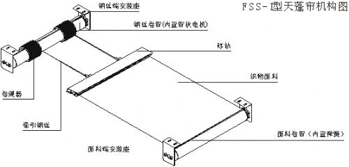 弹簧张紧天篷帘是电机张紧天篷帘的演变产品,它是由电机和弹簧系统组成的机构,当电机拉动面料时,弹簧系统靠扭力使面料产生张紧力,电机在运动过程中,面料拉出面积越来越大,弹簧的扭力也越来越大,弹簧始终使面料处于平整状态。