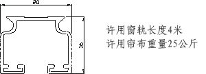 采用20-Q铝轨、20式覆盖滑移架(绳扣)、滑轮拉绳等组成的20-Q平帘机构。此机构适用于中等帘布重量、操作方便、窗帘开关任意停位。布帘中间重叠覆盖20公分,改善遮档效果。此机构已完全替代传统的工字轨和镀锌管窗帘轨,可广泛用于任何室内窗饰处。