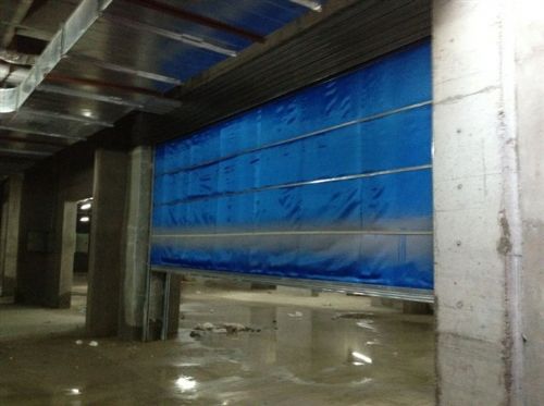 用不燃烧材料制成,从顶棚下垂不小于500 mm的固定或活动的挡烟设施。活动挡烟垂壁系指火灾时因感..
