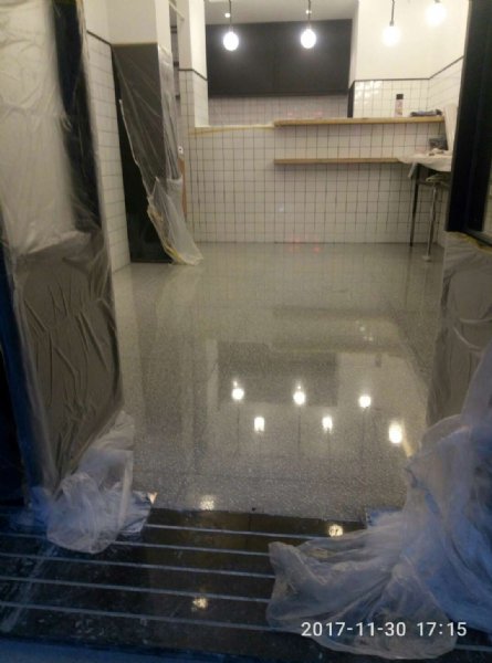 (5)色泽艳丽光洁,若需提高光亮打地板蜡或结晶,(不影响其防静电性能),硬化结晶处理后的水磨石地面,无需打腊也可保持长期高丽。