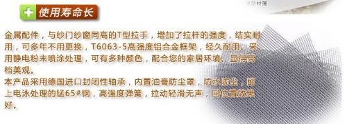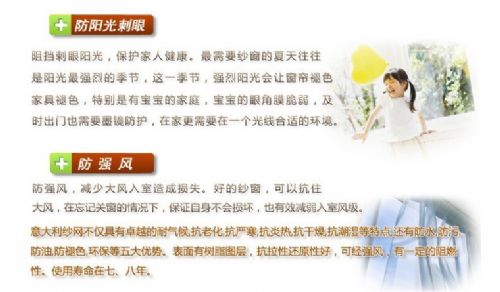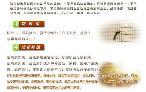 金刚网纱窗功能 1 防护系数高:中断不利因素,防止破坏或鼠、蛇、蝇、蚊等动物的入侵。 2 预防高空坠物:..