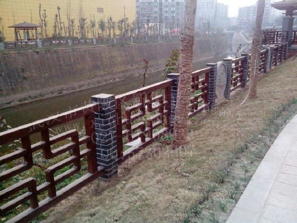 - 佛山仿木栏杆公园景观河堤道路护栏仿真木护栏