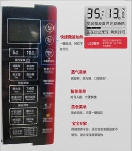 微波炉面板:镜面 额定功率:1000(W) 额定频率:50(HZ) 控制方式:微电脑式
