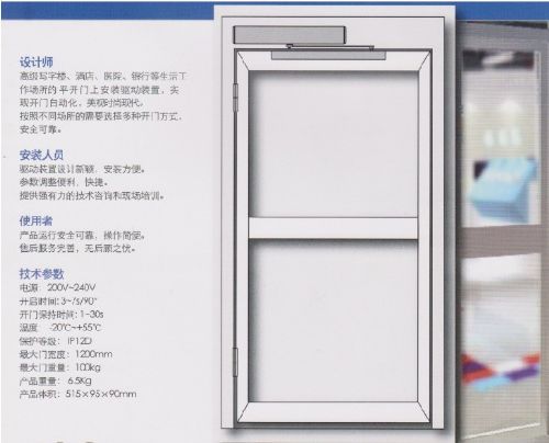 主营业务:自动平移门、弧形门、折叠门、旋转门、90°平开门、重叠自动门、医用密闭门、全/半高转闸门、电动开窗机