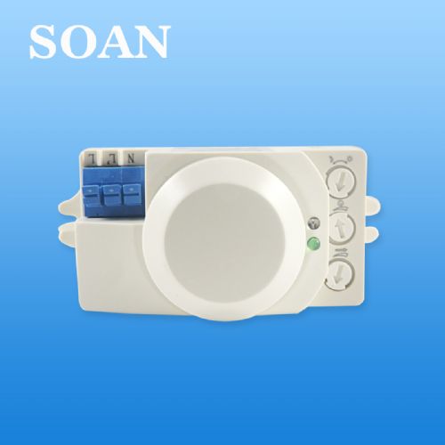 2.产品设计采用*微波传感器探测到人体或物体的移动,使开关自动接通负载,在人未离开且持续活动情况下,负载持续工作,在人离开后,开关进行延时,自动关闭负载;