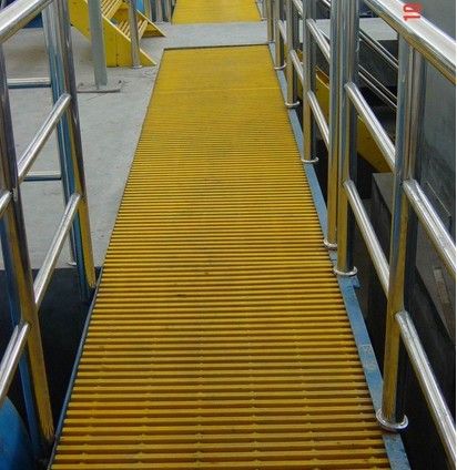 5、高强度:拉挤格栅根据重量比大约树脂占35%,玻璃钢纤维占65%,具有高强度/重量比率,