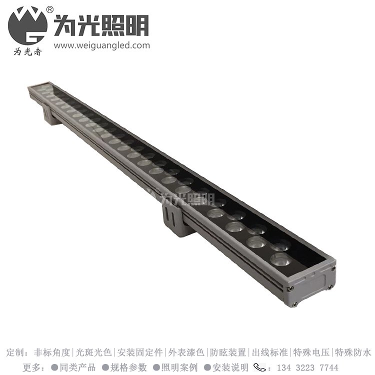 LED洗墙灯参数进行介绍: 1)功率: 洗墙灯的功率大小决定了其投射的距离, 一般常规有18W、24W、..