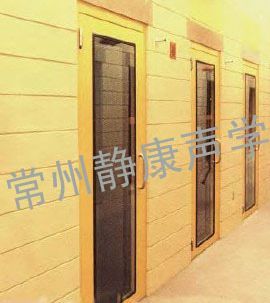 标准净尺寸为900mm×2100mm的隔声门。备有门表面与墙齐平的各种转向(如左旋,右旋,左右旋等)的结构或按国家标准防火值为20分钟或60分钟的细长条形玻璃门。所有静康隔声门和框架全部在工厂装配并经机械校准以方便安装并保证现场 的隔声性能。