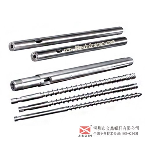 金鑫引进一系列进口高端精密加工生产设备,制造与欧美日同步的超耐磨、耐腐蚀、耐高压、耐高速等特殊注塑机螺杆、挤出机螺杆、双合金螺杆、双金属螺杆、螺杆机筒等各类塑机配件。拥有专业加工生产流水线,工艺先进,技术独特,引进欧美先进的专业制造技术。产品材质选用优质合金钢(38CrMOALA)或铬钼合金钢黑色十字(SACM645)、SKD61、碳化钨、9Cr18Mov等经过调质、定型、成型、精磨、表面氮化或喷焊合金(双金属)、抛光等工艺精制而成,具有高耐磨、抗腐蚀之优点。并为客户上门测绘、设计等业务。