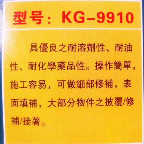 可耐钢修补剂,主要用于各种金属机械设备的维修、陶瓷、塑料、石材产品之间的粘接修补,均有良好的黏结能力。固化后可进行传统的各种机械加工及涂漆,并耐油,耐水及耐多种化学物质,在条件不允许常规焊接时,取代常规焊接方法的理想材料。在维护主要用于零部件的恢复尺寸、设备维修和维护、耐化学腐蚀、模具的制造和修复。可对钢、铁、铝等金属的容器、管道和一些另部件上出现的漏孔、裂缝、砂眼、缺陷、断裂、损坏等进行填充与粘接。