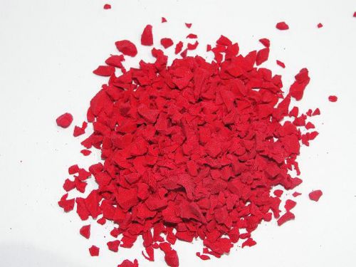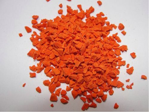 用途:代替传统使用的聚胺酯颗粒可低成本。而且使用性能优于聚胺酯颗粒,被广泛用铺设网球、篮球、羽毛球、田径跑道、儿童乐园等露天或室内运动场地。也可用于生产模压固化的彩色安全弹性地板。