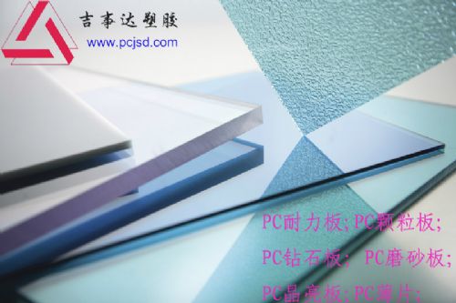 PC平板、钻石颗粒板、颗粒板、磨砂板。吉事达实心耐力板采用德国拜耳(BAYER)和美国通用(GE)等国际*PC高分子聚碳酸酯原料及双面UV抗紫外线原料加工而成,具有不可思议的耐冲击性能,比玻璃强250倍,其透光率接近90%,与玻璃相当,适用于商场、公用设施(公交广告站牌)、PC盾牌、住宅的天窗、采光罩、扩建的阳台、玻璃层。PC耐力板用于丝网印刷。公共设施如:声屏障、车站、灯箱、停车棚、行人路桥、候车亭、大楼门廊的棚顶、衔接地下室与地上或室内与室外等不同空间的过渡廊道,均适用吉事达耐力板。