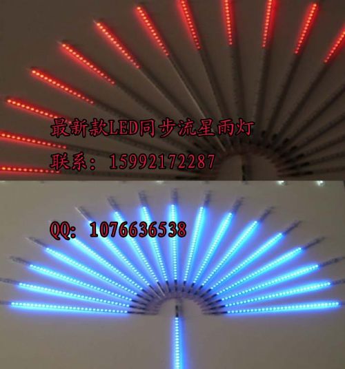 香港莎彩照照明超亮升级款双面LED流星雨灯 采用5050贴片高亮芯片,真双面,比市场上面假双面及直插流星雨不管是发光亮度还是寿命都要好很多, 实现彩色混色流星雨的效果
