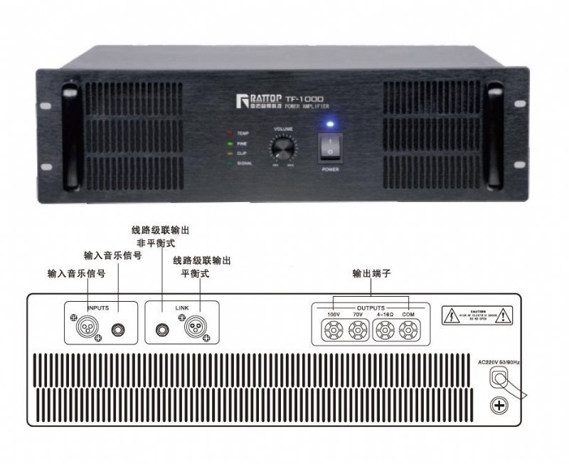 2.信噪比:MIC INPUT:80dB AUX INPUT:85dB