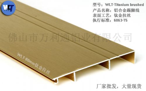 地脚线用于遮住柜脚的装饰板,高度与柜脚相同。它具有装饰美观的效果,能随意拆卸,打扫箱柜底部的地面卫生。由于与地面长期接触,地脚线宜选用铝合金的。 地脚线有两个作用:一是装饰作用,阴角线、腰线、地脚线起着平衡视觉的作用,利用它们的线形感觉及材质、色彩等在室内相互呼应,可以美化装饰居室;二是保护作用,脚踢得着的区域,易受冲击。做地脚线可以更好地使墙体和地面之间结合牢固,减少墙体变形,避免外力碰撞造成破坏。另外,地脚线也易擦洗,如拖地溅上的脏水等。 居室的地脚线在墙的*下部,从地面向上12-15厘米,是墙面装饰的一部分,也是墙面与地面的分界线,因为紧靠地面,容易被破坏,也易于弄脏,所以要求地脚线必须坚固,既不容易损坏,又便于擦洗。 地脚线是地面在墙壁上的延伸,因此所用的材料应与地面的面层材料相一致,地面是水磨石或木质板,地脚线也用水磨石或木质板做成,也有人用易清洁的瓷砖,则颜色必须一致或相近,如果反差太大,会有视觉上的不适感。 木质地板自然纹理清晰,*,与其它饰物容易相配,地脚线也采用同一质料,可以更加显得居室温馨、柔和。如果居室内铺的是地毯,其地脚线也使用木质制作更为适宜,这样能给人一种舒适、温暖的感觉。 根据国家《建筑工程质量检验评定标准》规定,地脚线质量检测时,一般要求高度一致,突出墙面的厚度均匀适中,接缝平整严密,与墙面结合牢固,上口平直。因此地脚线一定要精工细做,因为它也是家庭装饰的一道亮丽的风景线。 - 万利通铝业有限公司