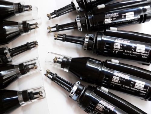 德国ARNO FUCHS阿诺福克斯(音译)ABISOFIX掌上型电动高速剥皮机,采用直流高速空心杯电机设计,高达20000RPM,并有即停刹车性能 ,其功能十分强大,是一种多功能多用途的高性能剥皮器,能彻底清除市面多种导线上任何坚硬的绝缘层,而绝不损害导线本身. 操作快捷容易, 效果特别出色. 是专门设计为制造变压器及线圈电器同修理马达, 发电机等行业使用, 并有多达9种功能22个类型刀头可供选择, 只需更换刀头即能转换为更多种用途,适用导线线直径由0.2 - 4.5mm ?.方形距形面扁平线达到35mm为提高产品质量与生产效率而增加利润,欢迎采用德国“阿诺福克斯”剥皮机