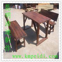 【材 质】:樟子松防腐/碳化实木木桌椅是工艺师父精心选材,在尺寸上也做了合理的规划,采用优质的樟子松经防腐、碳化加工,多道打磨、上漆加工而成。