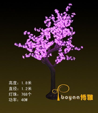 粉红色 、紫红色 100%双芯片LED 绝对不是点荧光粉的LED 保证一年光衰。如几个月光衰了包退包换!仿真树杆全部做树皮的效果,绝对不是直接刷油漆的生产工艺! 电源全部采用外置铝壳散热全防水整流器,博雅灯饰独家推出!