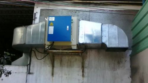 高碑店市馨云环保设备有限公司生产的低温等离子加动态拦截油烟净化器一体机在油烟空气净化设备前端的空气入口处..