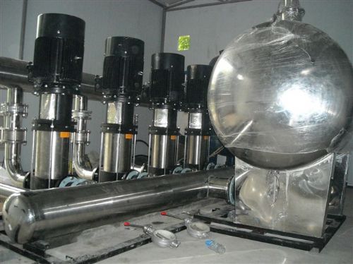 基本工作原理是根据用户用水量变化自动调节运行水泵台数或一台水泵转速,使水泵出口压力保持恒定。当用户用水量小于一台水泵出水量时,系统根据用水量变化有一台水泵变频调速运行,当用水量增加时管道系统内压力下降,这时压力传感器把检测到的信号传送给微机控制单元,通过微机运行判断,发出指令到变频器,控制水泵电机,使转速加快以保证系统压力恒定,反之当用水量减少时,使水泵转速减慢,以保持恒压。当用水量大于一台泵出水时,*一台泵切换到工频运行,第二台泵开始变频调速运行,当用水量大于两台泵出水量时,能自动停止一台或二台泵运行。在整个运行过程中,始终保持系统恒压不变,使水泵始终工作在高效能区,既保证用户恒压供水,又节省电能。