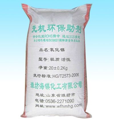 轻质活性氧化镁是以可溶性镁盐为原料,以先进工艺精细加工而成。产品具有粒度细、含量高、活性高质量稳定等特点。尤其是我们利用先进生产工艺在粉体表面进行了有机化改性处理,所以产品具有憎水亲油性,其在高分子材料中具有很好的分散性和相容性,少量添加就能极大地改善橡胶等材料的性能。已广泛应用于氯丁橡胶、氟橡胶、丁基橡胶、氯化聚乙烯(CPE)、聚氯乙烯(PVC)塑料及粘合剂、不饱和树脂、高级油墨、油漆等方面。用于橡套电缆、矿用电缆、船用电缆等行业,可使电缆提高防腐、 耐酸,抗高温等性能,提高恶劣条件下工作稳定性。