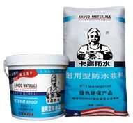 是一种双组份聚合物改性水泥基防水材料,它是由优质的水泥细沙及独特的非常活跃的高分子聚合物组成。与水作用后,涂料中含有的活性化学物质通过载体水向底材内部渗透,并反应生成不溶于水的枝蔓状结晶体,堵塞毛细孔道,可以阻遇从各个方向来的水通过。它与K11添加剂按一定比例混合以后,能极大地改善胶浆的粘结力、保水性和柔韧性,同时提高了防水层的耐磨性能,干固后不会产生收缩,并且可以抑制霉菌的生长和防水盐份的污染。